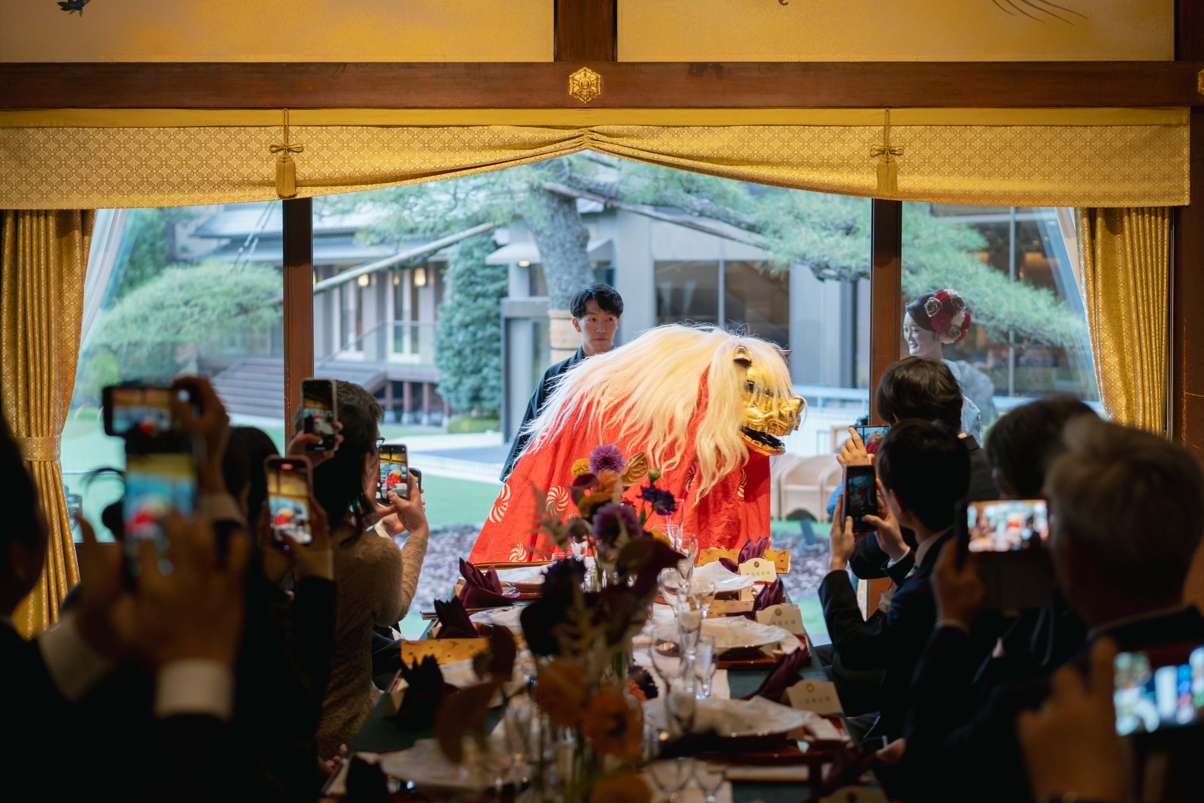 獅子舞の登場に続き、新郎新婦が入場