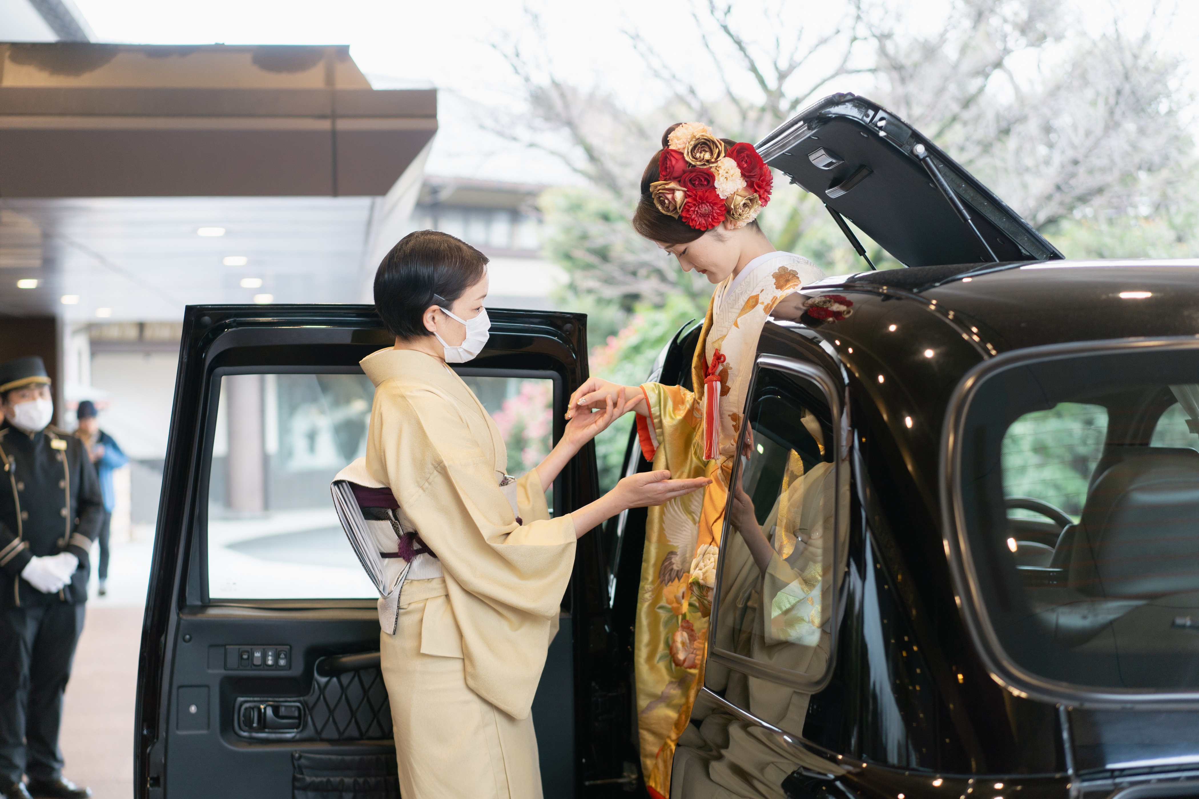 新郎新婦専用の移動車で明治記念館へ