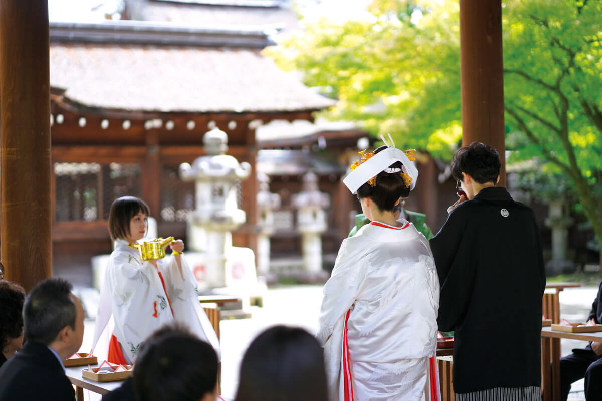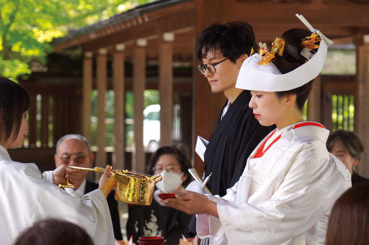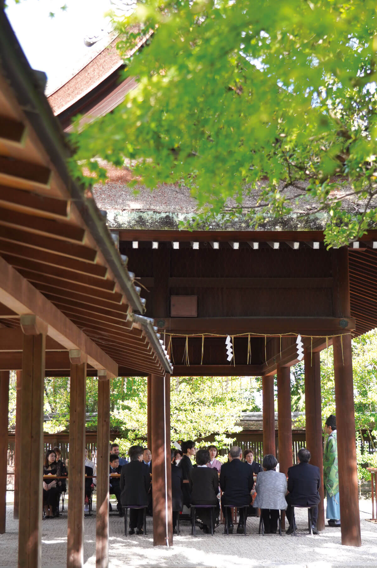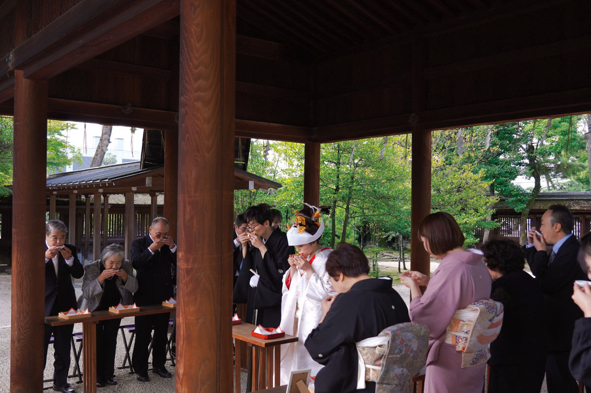爽やかな風が心地よい拝殿で執り行われた清廉な神前式